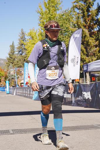 I got through half of the race, and by then, my stomach was slowly getting better. With the knowledge I have of my metabolism and general race nutrition, I believe I had essentially created a funnel in my digestion with the mass amount of carbs I had put in the night before. My body was not used to that and was also not able to move all those calories efficiently. Thankfully, sometime after mile 15, the bulk had been processed, and I was able to move with a little less strain. My knee, however, continued to persist with pain. I had brought a knee brace with ice, which helped a good deal during this race.