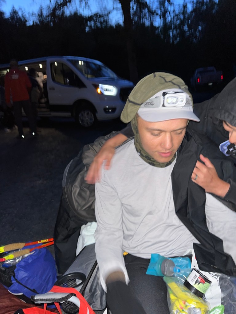 Starting this race, like many others, felt surreal. You spend so much time thinking about it, training for it, and planning, and then suddenly it’s right in front of you, real and tangible. The weather forecast wasn’t promising—rain, cold temperatures, and overall rough conditions were expected. As I was shuttled to the starting line with the other 100-mile runners, my mind ran through the race plan I had meticulously laid out, reviewing my nutrition benchmarks and pacing strategy. This was the first time I had put real effort into creating a detailed plan, and I was determined to stick to it.